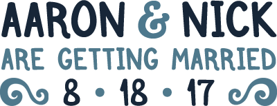 The Deal: We will be getting married at City Hall early on Friday, August 18. It will be casual, simple, and small. While we would love to have everyone there, the space will not be able to accommodate more than our immediate families. That evening, from 9pm to midnight, we are excited to see everyone at The Knitting Factory in Brooklyn to celebrate. Picture the best cocktail party you've never been to, then picture it being a half-Jewish gay wedding.